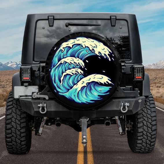 This spare tire cover with Blue Ocean Wave design will protect your expensive spare tire against sun, wind, dust and water! And it will add a personal touch to the exterior of your car as well!