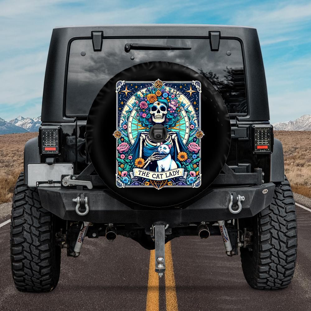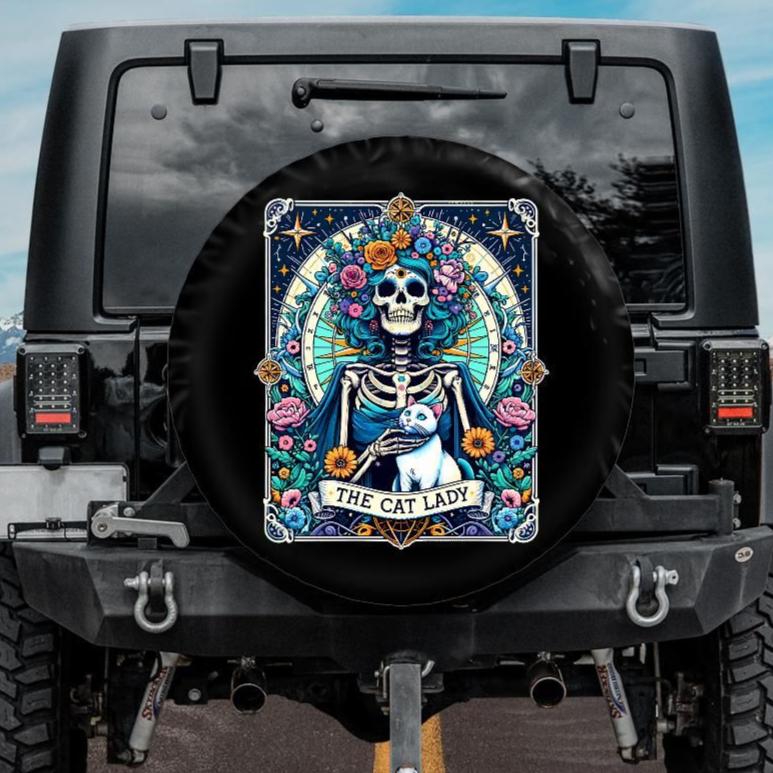 This funny spare wheel cover features The Crazy Cat Lady tarot card design, and it will protect your expensive spare tire against sun, wind, dust and water! And it will add a personal touch to the exterior of your car as well! Backup camera hole available at no extra cost!