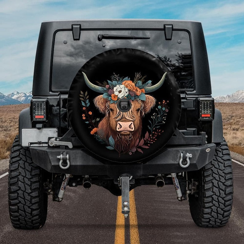 This cute spare tire cover with Highland Cow in a meadow flowers will protect your expensive spare tire against sun, wind, dust and water! And it will add a personal touch to the exterior of your car as well!