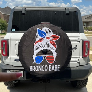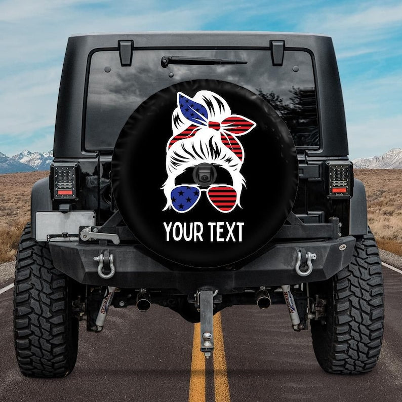 This personalized spare tire cover features Messy Bun design and any text you want! It will protect your expensive spare tire against sun, wind, dust and water!