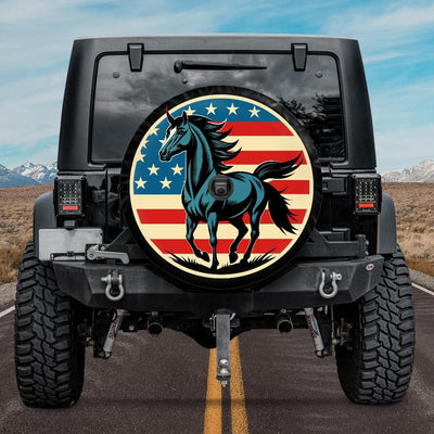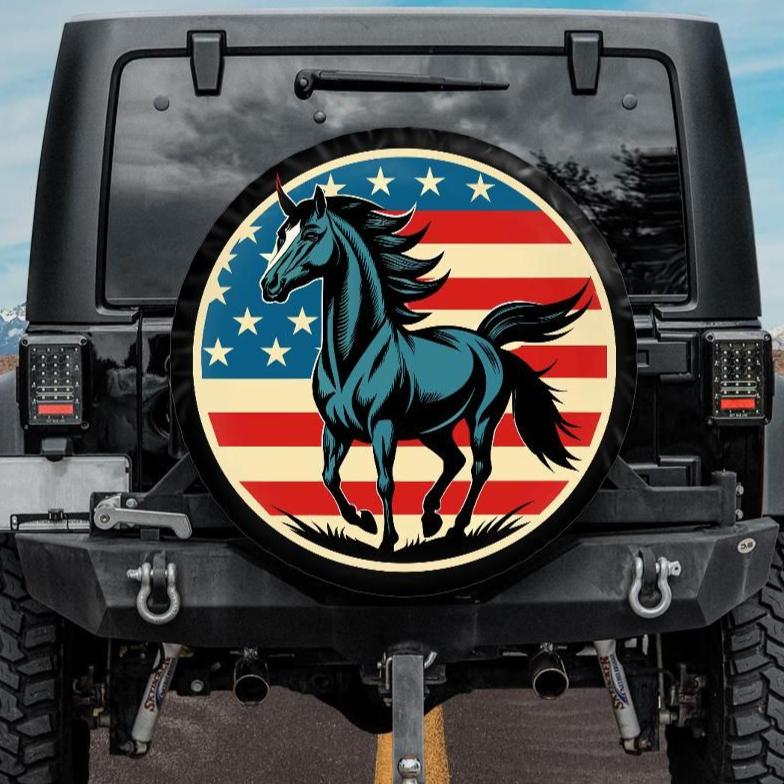 This spare tire cover with American flag and Morgan Horse design will protect your expensive spare tire against sun, wind, dust and water! And it will add a personal touch to the exterior of your car as well!