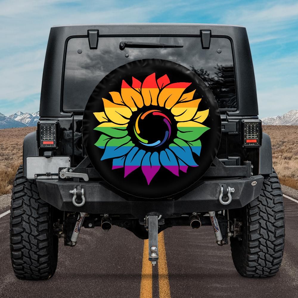 rainbow sunflower lgbt tire cover