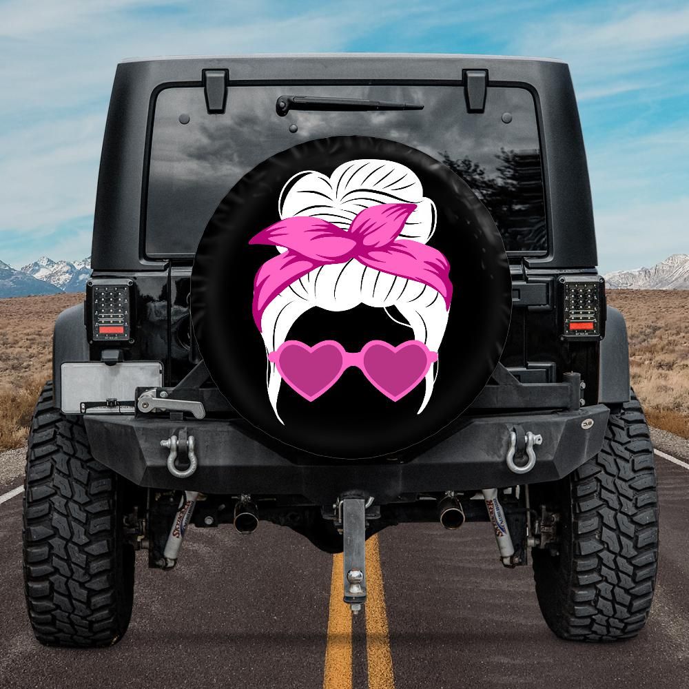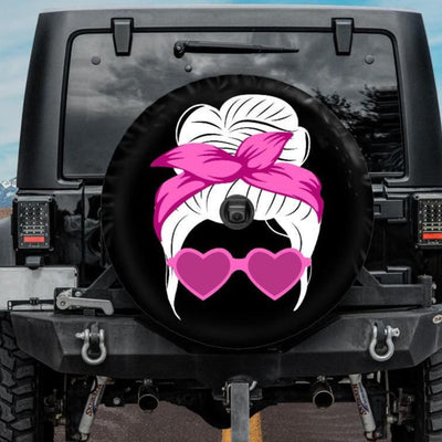 This spare tire cover with Pink Messy Bun and heart sunglasses design will protect your expensive spare tire against sun, wind, dust and water! And it will add a personal touch to the exterior of your car as well!