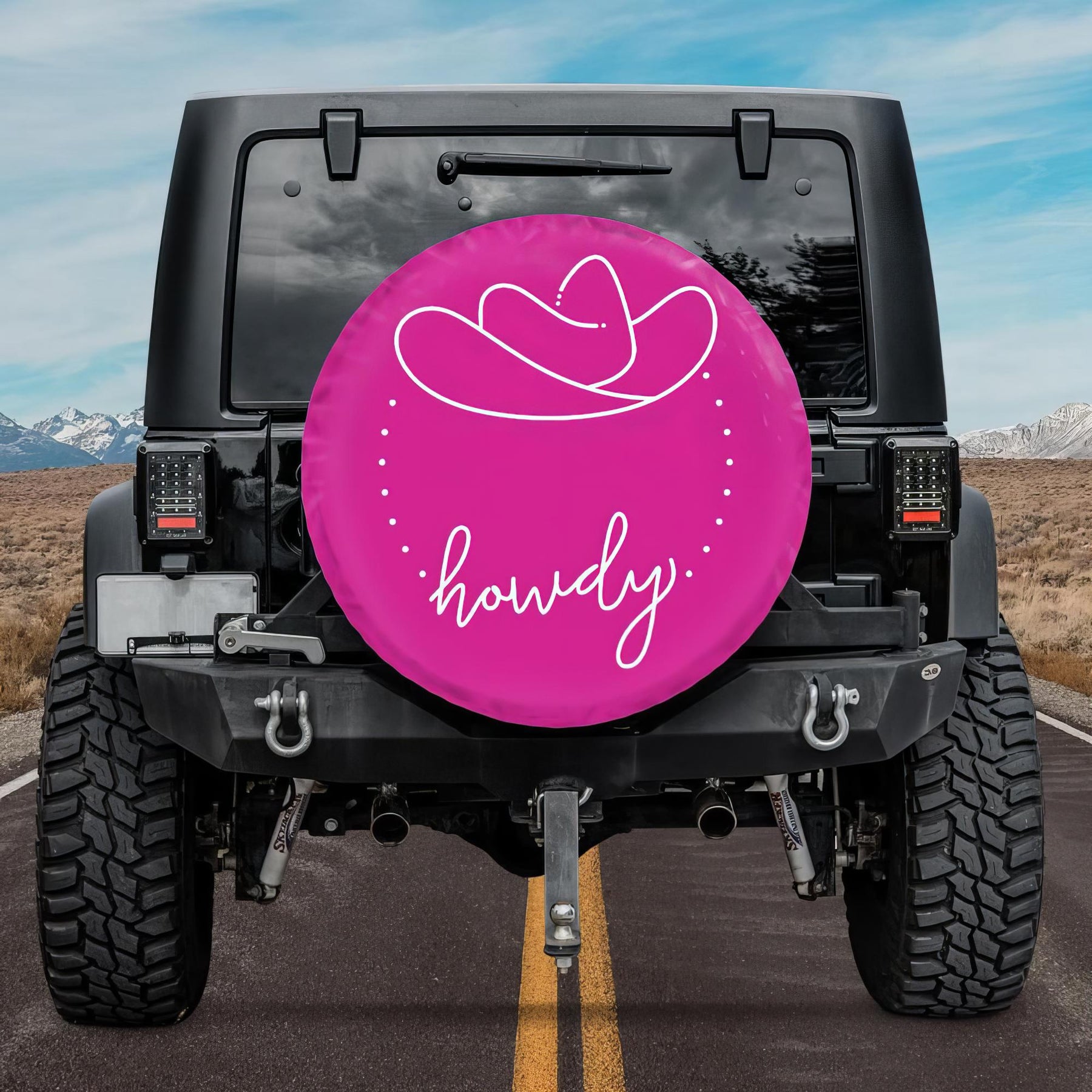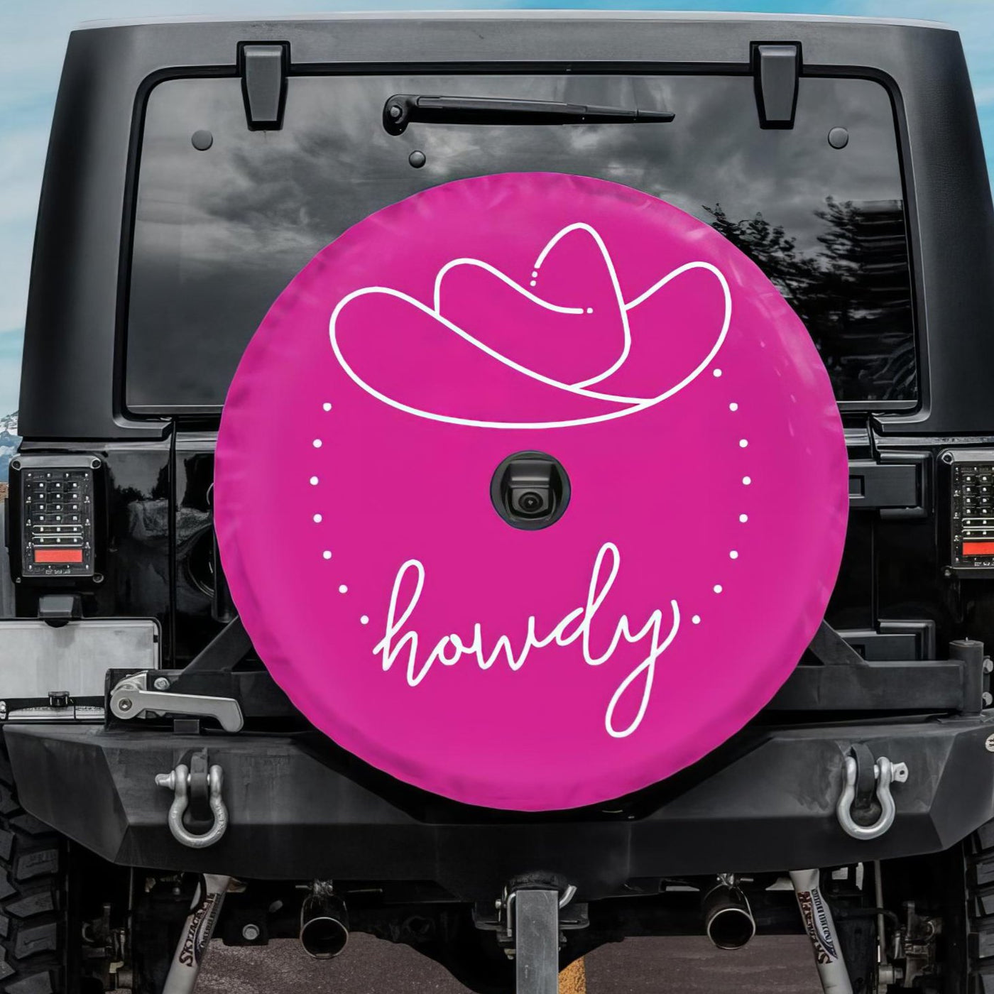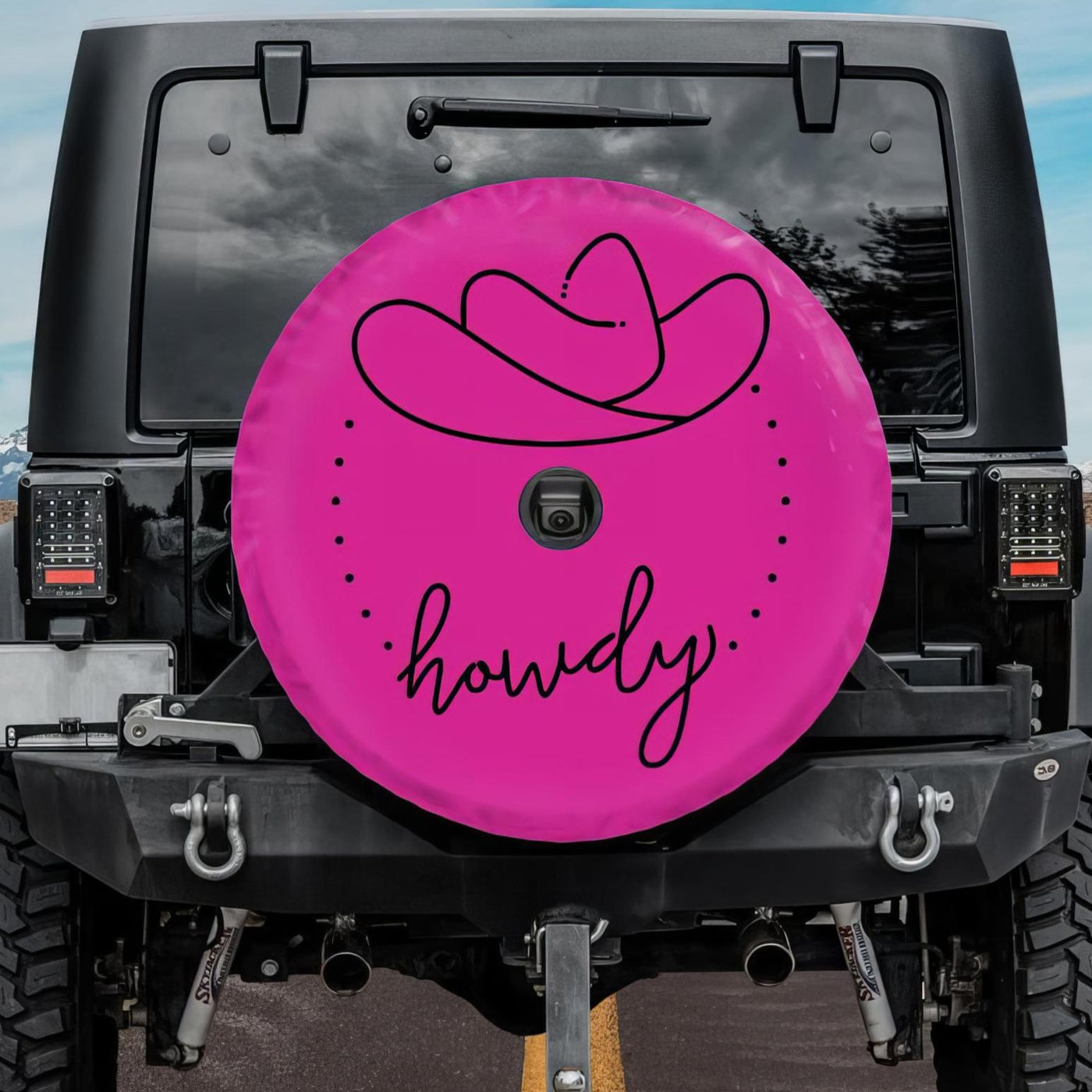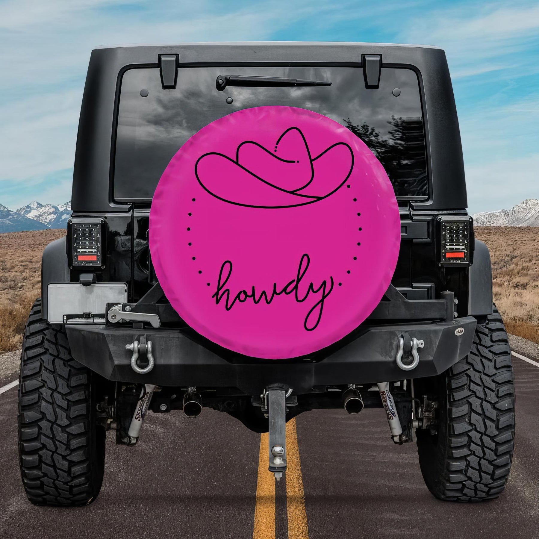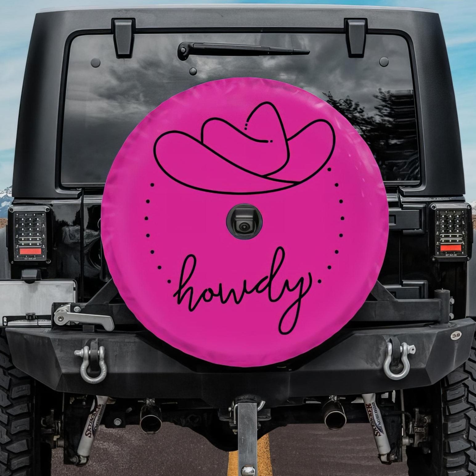 Protect your spare tire with the stylish and durable Pink Tire Cover, designed to fit Jeeps and other vehicles. This personalized soft tire cover features funny Howdy design, and comes with a camera hole or without it, ensuring both protection and functionality for your Jeep.
