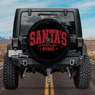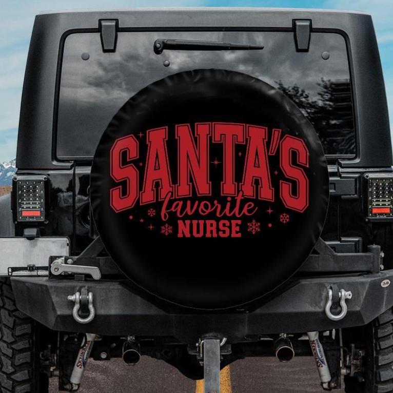 This spare tire cover says Santa's Favorite Nurse in trendy sports style. It will protect your expensive spare tire against sun, wind, dust and water! And it will add a personal touch to the exterior of your car as well!