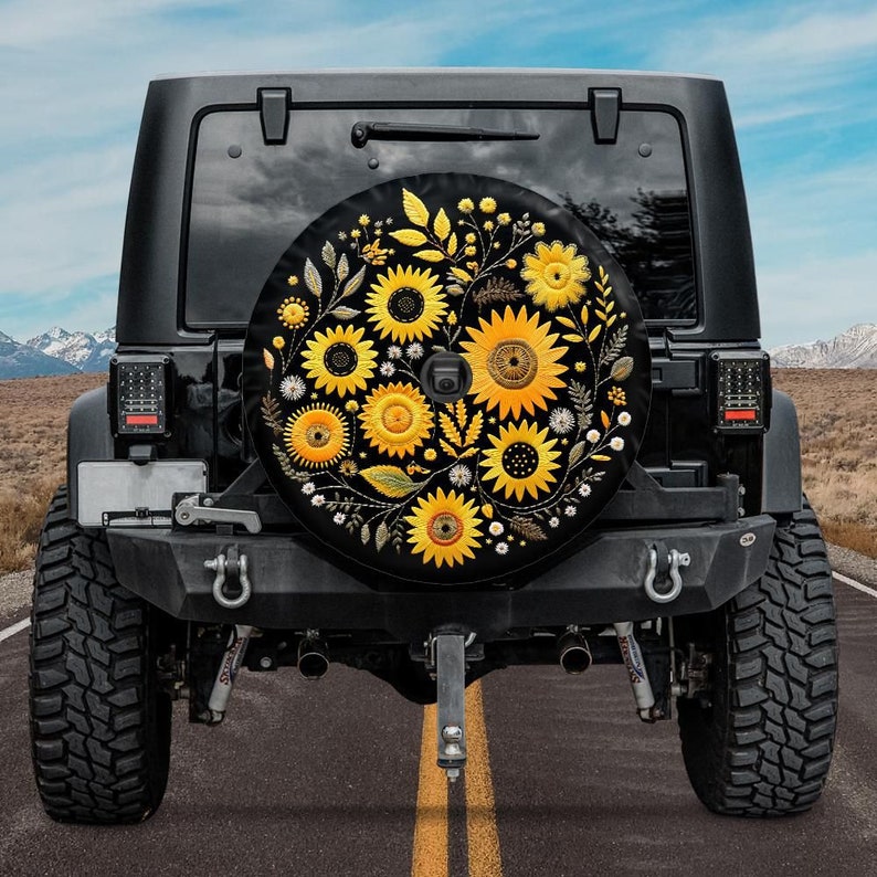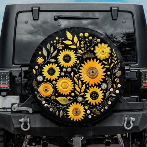 jeep tire cover, sunflower tire cover, embroidery tire cover, boho tire cover