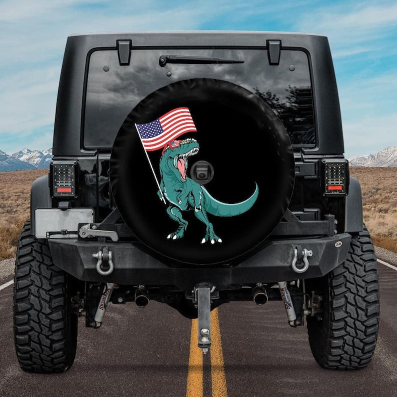 This spare tire cover with American Flag and T-Rex design will protect your expensive spare tire against sun, wind, dust and water! And it will add a personal touch to the exterior of your car as well!