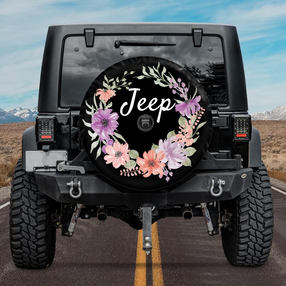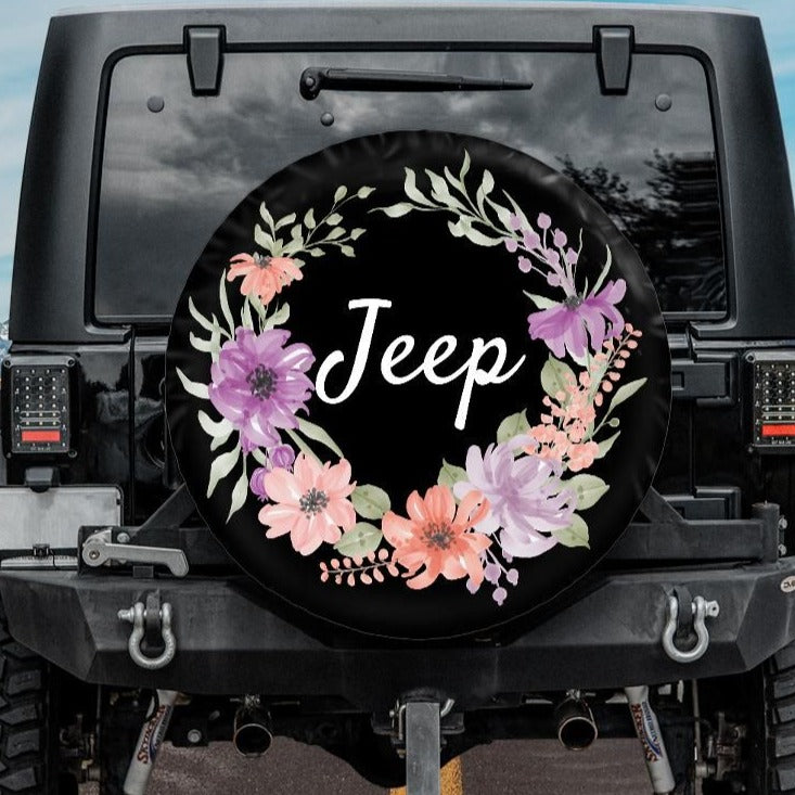 This spare tire cover with Vintage Jeep Flower Wreath design will protect your expensive spare tire against sun, wind, dust and water! And it will add a personal touch to the exterior of your car as well!